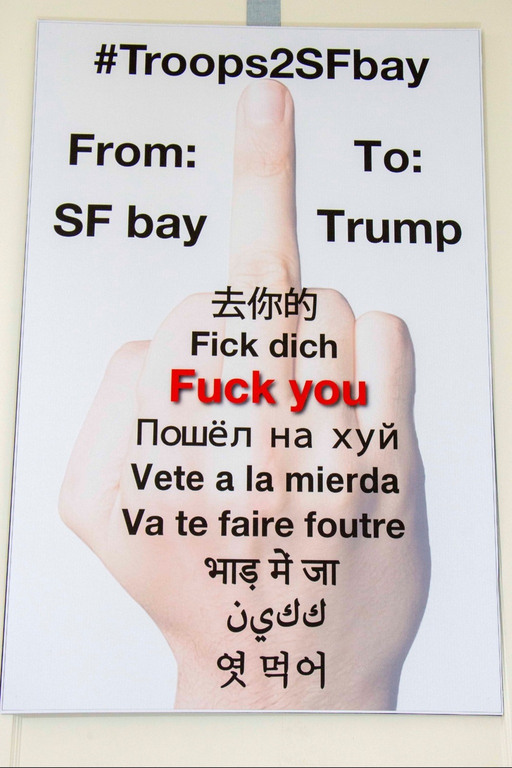 Dear Trump, we cordially invite you to send National Guard troops to the San Francisco Bay area. To roll out the red carpet for your fascist military march across America's cities, we'll be posting welcome signs all over the SF Bay. We plead with you: stop teasing to send troops but never following through. Do it, bitch. We fucking dare you.